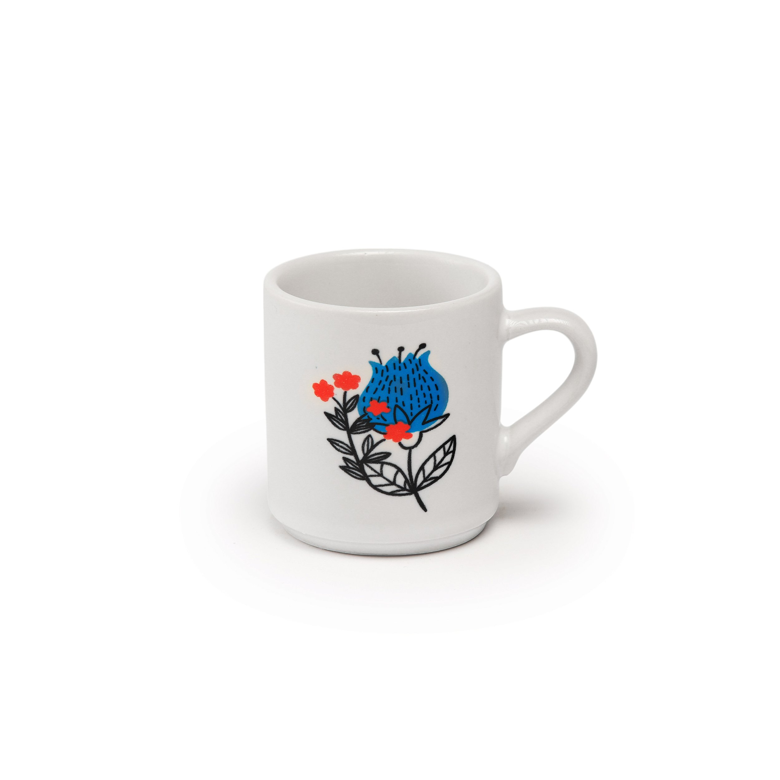 Xícara Café Canequinha Lisa Branca Decorada Flor 60 ml